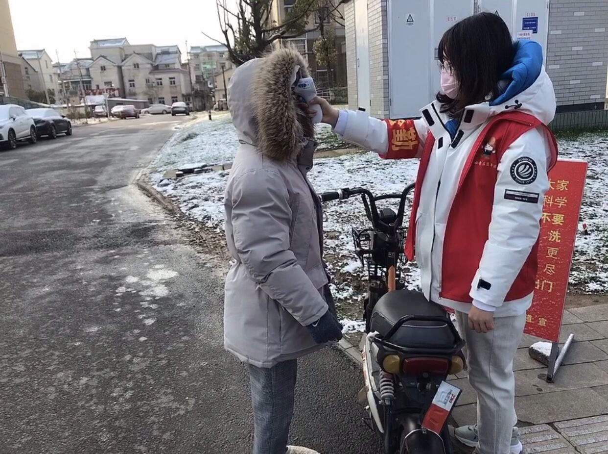 吴琦同学主要参与值守社区卡口、登记出入车辆、测量体温等防控工作。当然除了这些常规性工作,还要耐心劝解不戴口罩等行为。