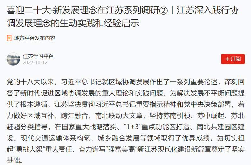 10月11日和10月12日,《新华日报》《学习强国》分别以“协调为笔,绘就一体化发展新画卷”“喜迎二十大·江苏深入践行协调发展理念的生动实践和经验启示”为题,就新时代江苏协调发展问题刊发了beat365叶磊副教授参与的新发展理念在江苏系列调研成果。