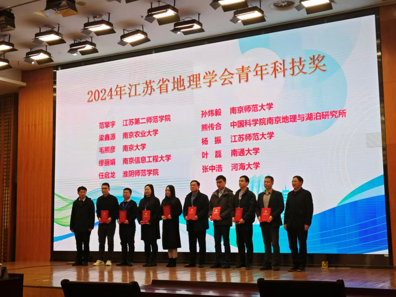 图为江苏省地理学会青年科技奖颁奖现场(右五为叶磊副教授)