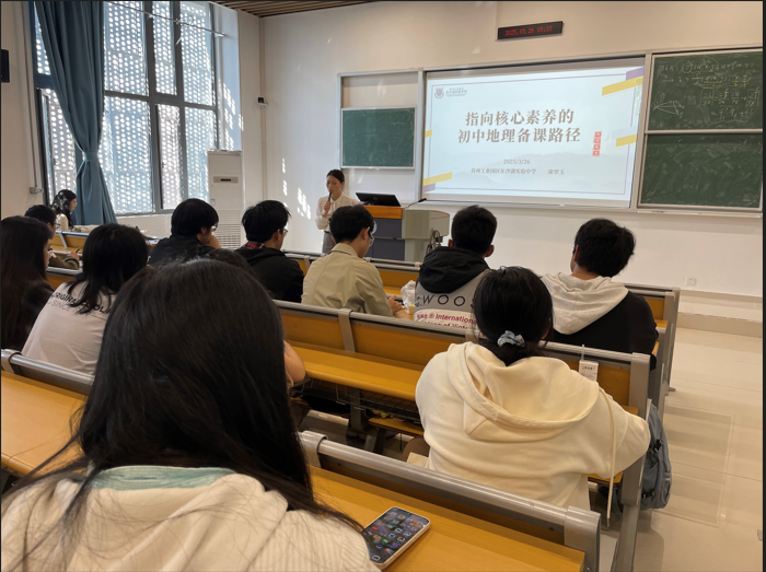 2024 年 3 月 26 日,地理科学(师范)专业 23 级全体学生齐聚于 39A - 105 教室,聆听了来自苏州工业园区东沙湖实验中学的康翠玉老师带来的专题讲座,讲座题目为《指向核心素养的初中地理备课路径》。