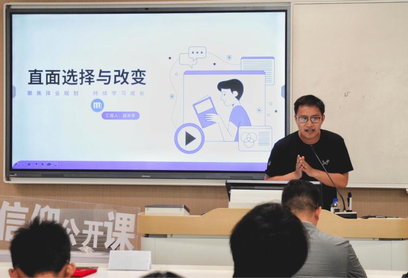 盛英豪则以“直面选择与挑战”为主线,通过职业现状分析、个人竞争力构建、跨界思维培养、与时俱进发展四大维度,为学弟学妹们明晰了职业发展路径。他结合地信行业前沿案例,强调“宏观视野与微观行动相结合”的重要性,从通过行业趋势研判锚定方向、依托终身学习强化核心能力、以开放姿态拥抱时代变革三方面,为处于职业探索期的学子注入破局勇气。