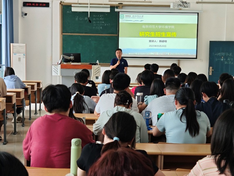 宣讲会上,韩睿明教授结合自身丰富的科研实践与人才培养经验,围绕南京师范大学环境科学与工程学科的发展现状、研究方向、导师团队、科研平台及近年来研究生招生政策等内容进行了详细介绍。在互动提问环节,同学们就考研择校、专业匹配、科研选题、推免政策等方面踊跃发言,韩教授一一予以耐心、专业的解答,现场气氛热烈,交流深入,增强了同学们对研究生阶段学习生活的理解和信心。