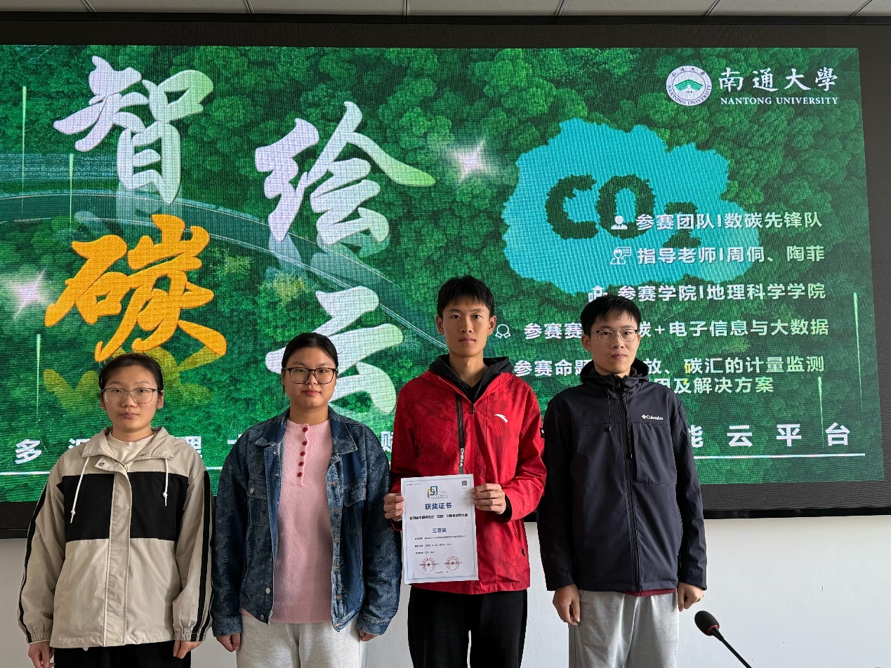近日,“沈化百特杯”第四届中国研究生“双碳”创新与创意大赛公布获奖结果。我校beat365官方网站报送的专家命题赛道作品《智绘碳云——多源地理大数据赋能的双碳智能云平台》(团队成员:冯丽娜、殷晓田、魏天资、杨留步(研25资源与环境专硕),指导老师:周侗、陶菲)获得专家命题赛道三等奖。