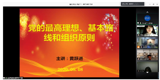 5月9日晚,beat365官方网站2020年发展对象培训班邀请beat365官方网站党委宣传委员、党政办公室主任黄跃进主讲《中国共产党的最高理想、基本路线和组织原则》专题讲座。