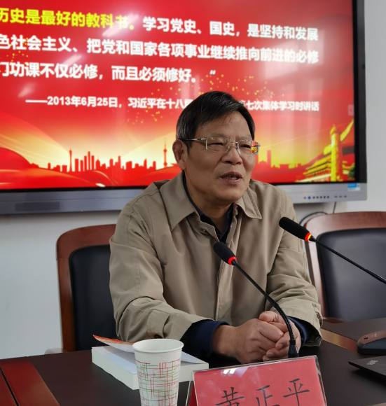 黄正平以“百年华诞风华正茂——世界第一大党历史发展逻辑与理论实践逻辑相统一的伟大历程”为题,从“伟大成就创造伟大历史(历史发展逻辑)”、“科学思想指引正确航向(理论逻辑)”、“不断奋斗凝聚精神力量(实践逻辑)”三个方面全面阐述了中国共产党的百年历史,指出,百年党史是一部不懈奋斗史,是一部理论探索史,是一部自身建设史,更是一部复兴路上中华民族不断前进史。“历史是最好的教科书,也是最好的清醒剂和最好的营养剂”。黄正平希望大家把学好百年党史放在“四史”学习的突出地位,将学习党史与学习近代史、社会主义发展史相结合,与学习地方党史相结合,与习近平南通讲话精神相结合,紧密联系个人成长史、党内生活史开展学习,学史明理、学史增信、学史崇德、学史力行,为实现全面建成社会主义现代化国家的复兴目标而不懈奋斗。