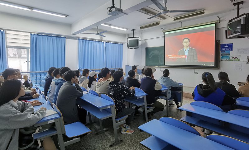 4月24日下午,beat365官方网站组织各年级学生代表集中观看“同上‘四史’思政大课”直播活动。
