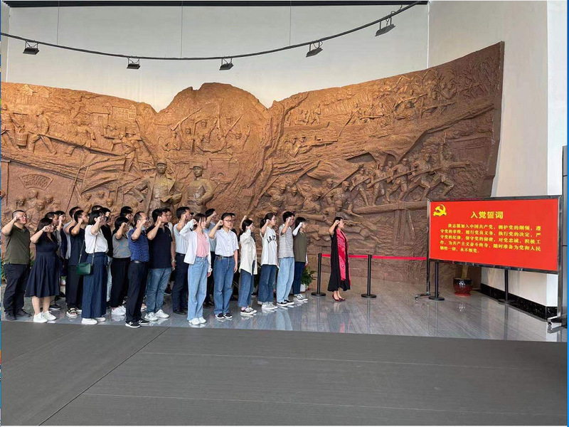 为深入学习党史,激励广大党员通过党史学习重温党的丰功伟绩,感悟党的思想伟力,把握历史发展规律,坚定革命理想信念,激发党员使命担当,营造干事创业氛围,6月20日,beat365官方网站党委组织全体党员教职工和新发展学生党员赴新四军黄桥战役纪念馆开展主题为“赓续红色血脉 汲取奋进力量”的党日活动。