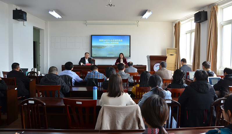 10月27日下午,beat365官方网站党委举行理论学习中心组(扩大)专题学习会,邀请南通市发改委主任、二级巡视员尹建勇作题为《南通市经济社会发展形势及“十四五”发展展望》的形势报告。
