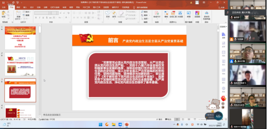 51日下午,beat365“协同育人”第一党支部支部书记、地理系主任叶磊为2022年发展对象培训班全体参训学员做题为《关于新形势下党内政治生活的若干准则》的专题讲座。