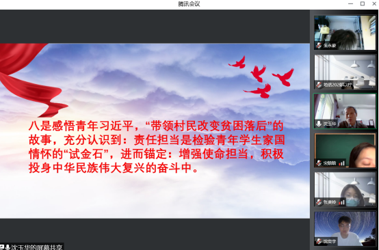 沈玉华以习总书记青春奋斗故事为主要内容,带领全体学员重走习近平总书记青春奋斗足迹,深刻感悟习总书记在入团入党、插队劳动以及扶贫攻坚等奋斗历程中的榜样力量和模范指引,介绍了习近平总书记以自己的亲身经历为广大青年树立了榜样。讲座中,沈玉华将习近平青春成才故事与回顾习总书记的工作历程相结合,同时回顾党的十八大以来,我国改革开放和社会主义现代化建设取得的历史性成就,着重指出要像青年习近平一样在工作中以实际行动“坚定理想信念,站稳人民立场,练就过硬本领,投身强国伟业”,充分认识到责任担当是青年学生家国情怀的“试金石”。会议最后,沈玉华深度剖析了习近平新时代中国特色社会主义理论体系的形成过程和习总书记成长奋斗历程千丝万缕的联系,以习近平总书记为前进路上的榜样,争取早日加入党组织。