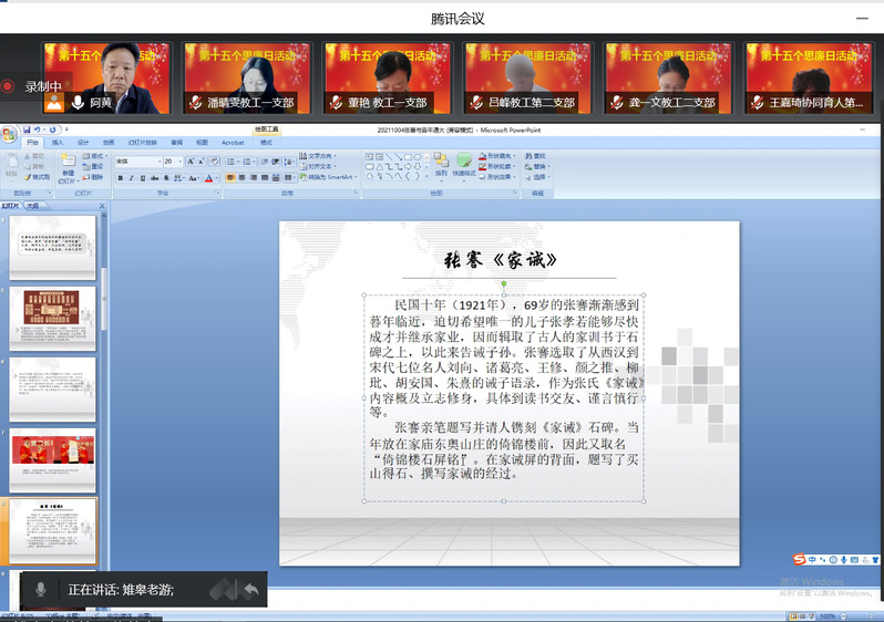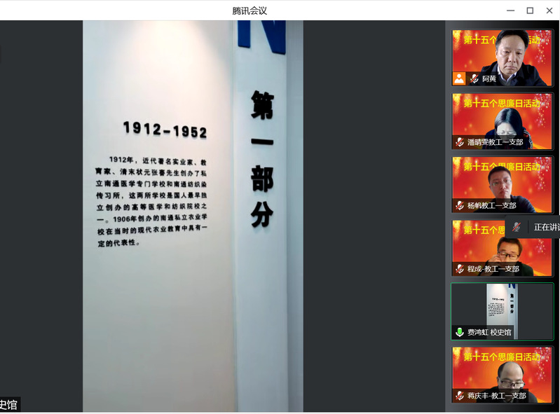 全体党员通过视频连线的方式,在讲解员的带领和介绍下参观了beat365官方网站校史馆和张謇教育馆,重温了beat365官方网站110年波澜壮阔的办学历史和先校长张謇先生的教育思想与伟业;邀请校史馆馆长万久富教授在线做了《张謇家风与文化传承》的主题报告,领略了张謇先生实业救国、教育救国的远大抱负和“勤学”、“诚信”、“廉公”的家风传承;组织全体党员集中在线观看了党风廉政教育专题片《折翼的青春》,让大家再次从举案说法说纪中得到了警示和启迪。