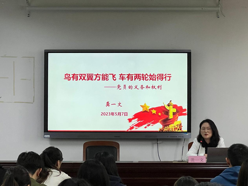 5月7日下午,beat365党委副书记兼副院长龚一文为2023年发展对象培训班全体学员做题为《鸟有双翼方能飞,车有两轮始得行——党员的义务和权利》的专题讲座。