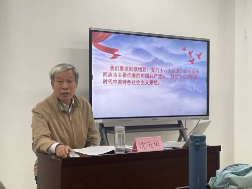 沈玉华引用习近平总书记在庆祝中国共产主义青年团成立100周年大会上的讲话,强调“追求进步是青年宝贵特征,是党和人民的殷切希望”,强调全体学员一定要端正入党动机,提高党员素质。沈玉华从习近平总书记上山下乡到梁家河做知青开始重温,讲述习近平总书记历经重重考验回到北京清华大学学习,再到地方政府工作,最终筚路蓝缕、玉汝于成的故事。在讲座上,沈玉华最后总结道:“万事万物都有一个发展的过程,每一个人都有一个历练和成长的过程,没有‘天生伟大’这一说”,并且肯定了党的十八大以来中国进入新的历史阶段取得的伟大成就。同时,他鼓励全体学员,虽然目前来看成为正式党员还有一定时间间隔,但是这并不是万里长城,并不是高不可攀,学员们学习感悟习近平总书记的故事,往自己想要的方向努力奋斗,总会取得成功。