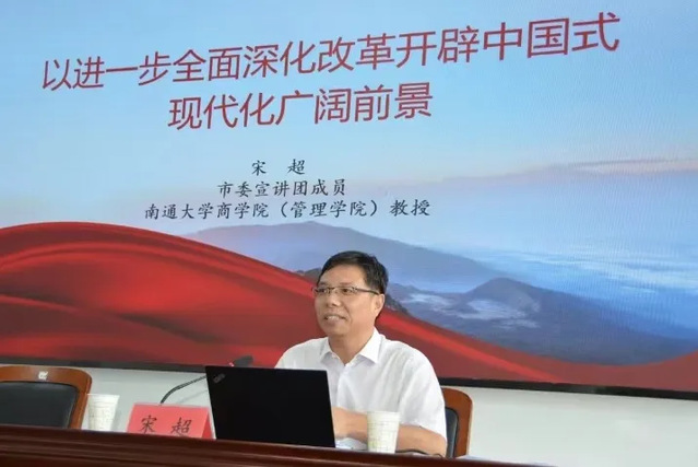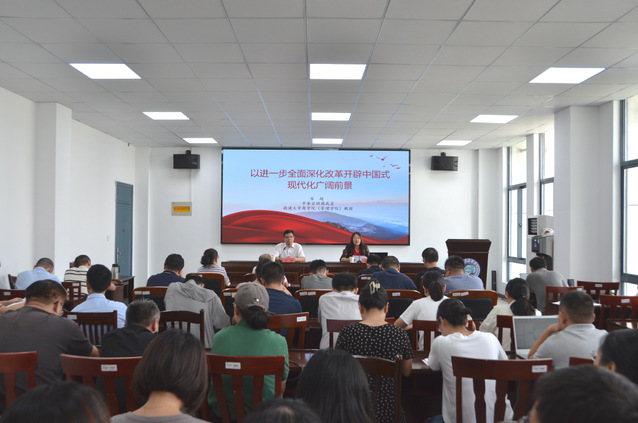 9月18日下午,beat365官方网站举办学习贯彻党的二十届三中全会精神报告会。南通市委宣讲团成员、商学院宋超教授作宣讲报告。学院党委书记潘晴雯主持报告会。