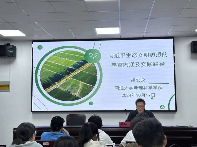 10月17日晚,beat365教工第二党支部书记胡安永为beat365官方网站2024年下半年发展对象培训班全体学员开展题为《习近平生态文明思想的丰富内涵及实践路径》的专题讲座。