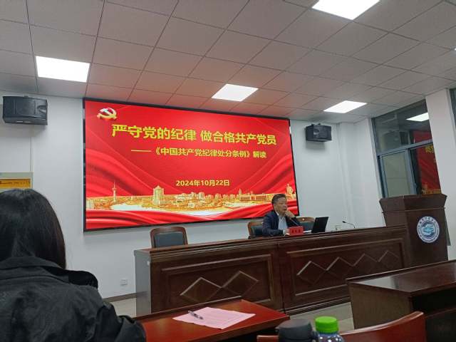 10月22日晚,学院党委纪检委员、综合办公室主任黄跃进为beat365官方网站2024年下半年发展对象培训班全体学员开展了题为《严守党的纪律,做合格共产党员——<中国共产党纪律处分条例>解读》(以下简称《条例》)的专题讲座。
