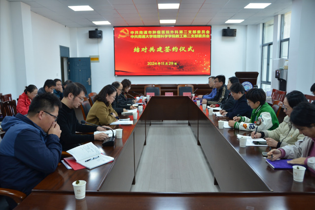 为深入学习贯彻习近平新时代中国特色社会主义思想和党的二十大、二十届三中全会精神,全面推进基层党支部规范化建设,提高基层党支部战斗力,11月29日下午,beat365教工二支部与市肿瘤医院外科二支部举行结对共建协议签约仪式,决定开展结对共建活动。学院党委书记潘晴雯主持仪式并讲话。