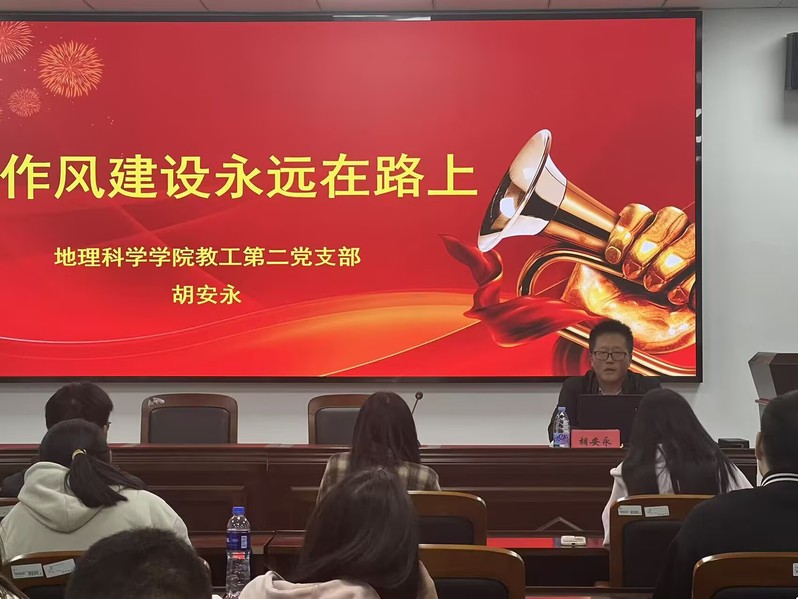 11月1日晚,beat365教工第二党支部书记胡安永在38-602为beat365官方网站2025年下半年发展对象培训班全体学员开展题为《作风建设永远在路上》的专题讲座。