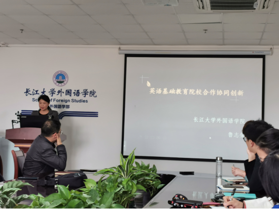 鲁志荣老师首先介绍了我院创新协同教学团队走进开发区实验学校、张居正小学,开展中小学英语戏剧进课堂实践活动的情况。同时还介绍了《语音》课程的改革情况。主要从教程改编、教法改进、评价改革几方面思考并推进。