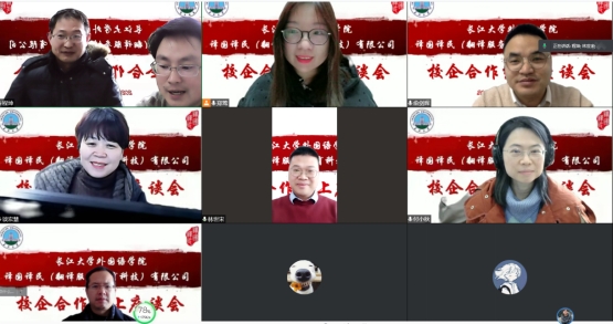 1227日上午,必赢优惠y272net与武汉译国译民教育科技有限公司通过腾讯会议就校企合作事宜举行云端座谈会。必赢优惠y272net院长谈宏慧教授、副院长谢家成教授、MTI主任王峰教授、副院长付小秋博士、党委副书记程坤老师以及武汉译国译民教育科技有限公司董事长林世宋、总经理俞剑辉和事业部经理郑莺参会。