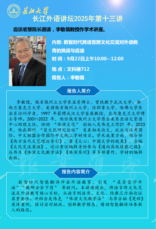 - 长江外语讲坛2025年第十三讲:数智时代跨语言...09-17